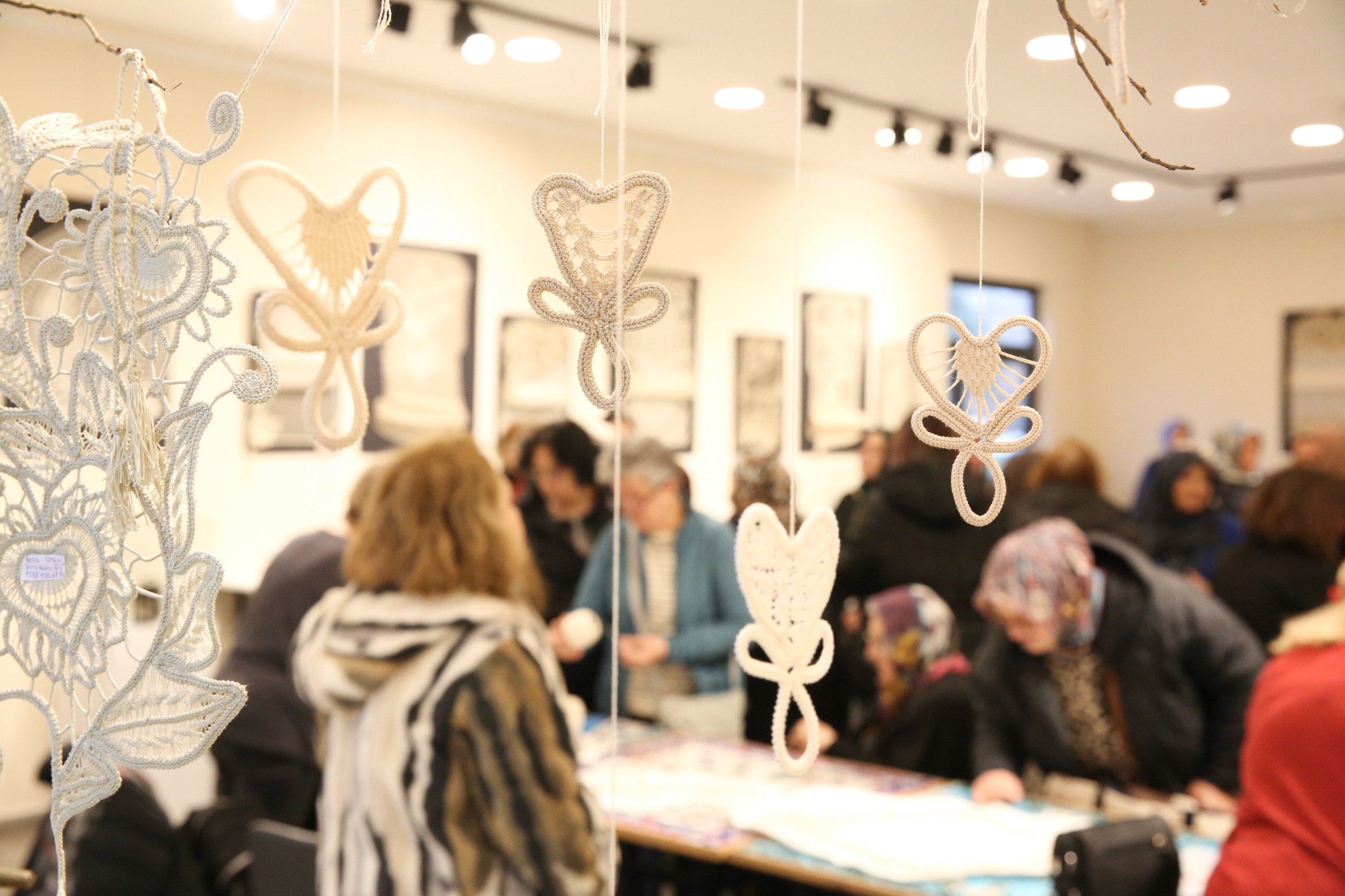 Dantel Anglez Sergisi’nde runner örtülerden çantalara, abajurlardan ev aksesuarlarına, tepsilerden bardak altlıklarına kadar pek çok eser yer aldı. Geleneksel çizgilerin modern anlayışa evrildiği zarif dantel motiflerini sanatseverlerle buluşturan sergi, ziyaretçilerin beğenisini kazandı. Sergide ayrıca ziyaretçilere, dantel anglez tekniklerini öğrenip uygulayabilme fırsatı sunan deneyim alanı da büyük ilgi gördü.